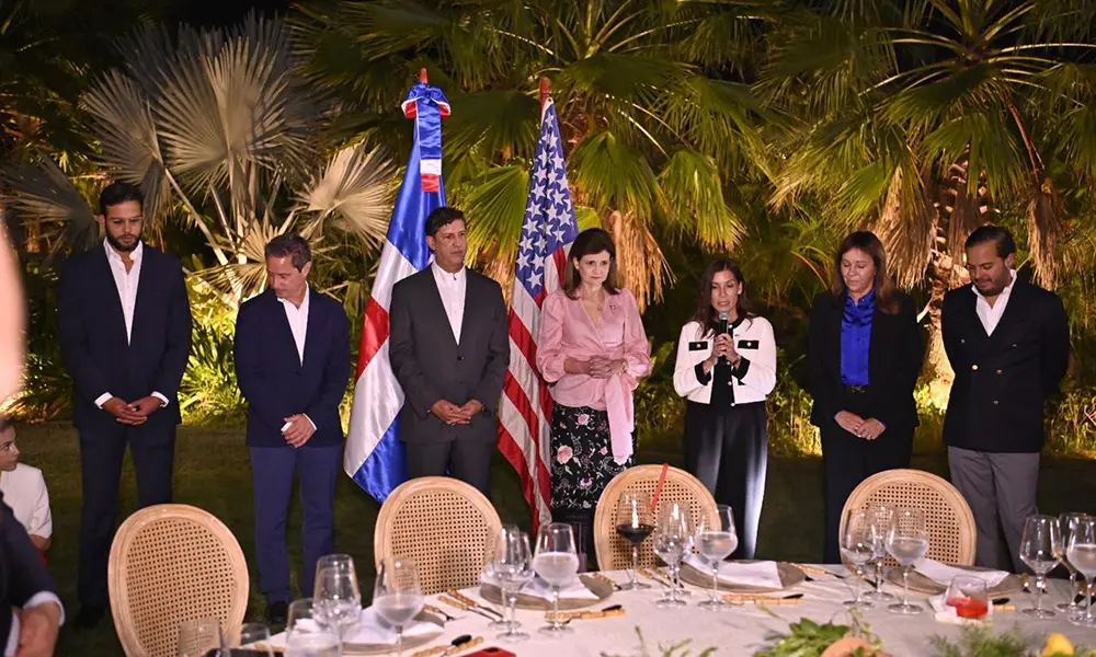 El empresario Manuel Estrella, presidente de Ingeniería Estrella, recibió en su residencia a la vicepresidenta de la República, Raquel Peña, y a la embajadora de los Estados Unidos, Leah Campos, en un encuentro que subrayó el liderazgo de la región.